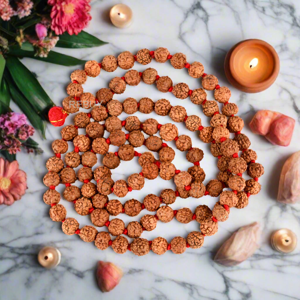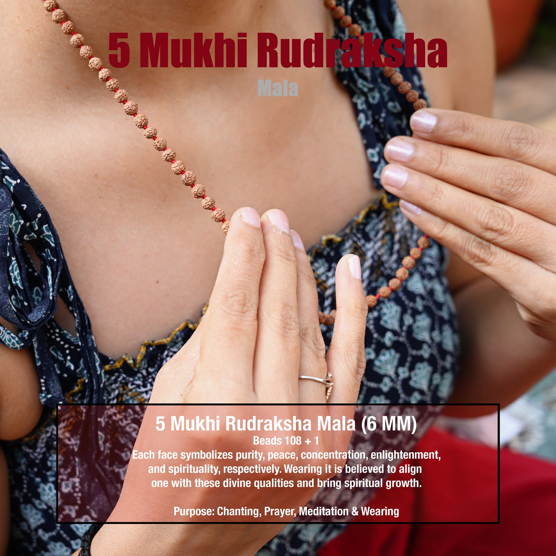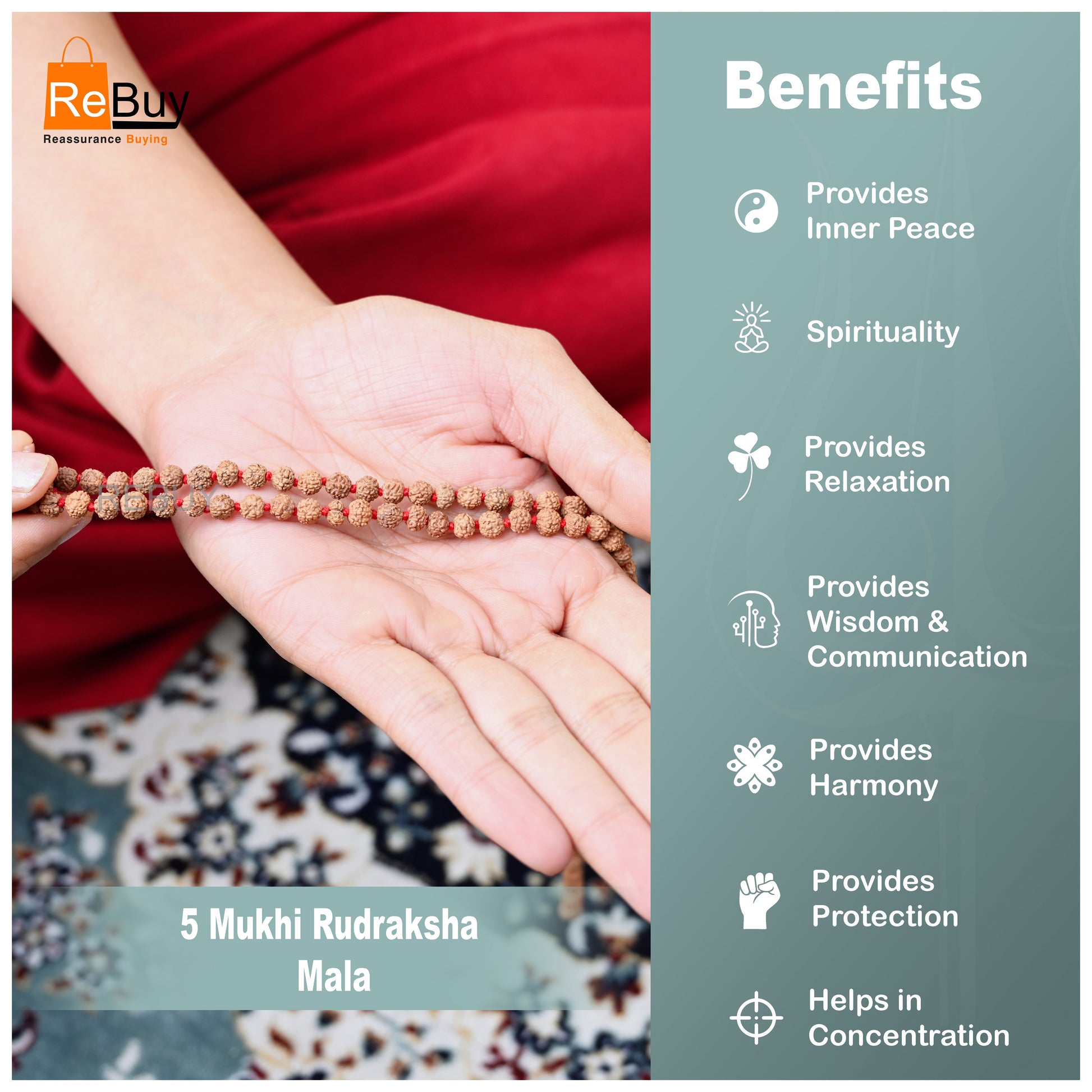 5 Mukhi Rudraksha Mala 4mm Beads Helps in Concentration, Protection, Harmony, Inner Peace | Ideal for Prayer, Meditation | 108 Beads