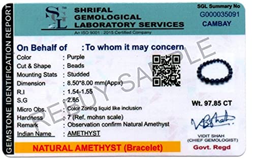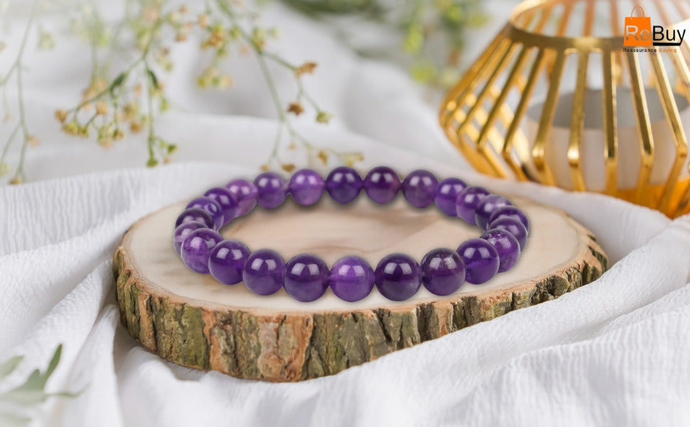Amethyst Stone Bracelet Original & Lab Certified 8mm for Men & Women By REBUY