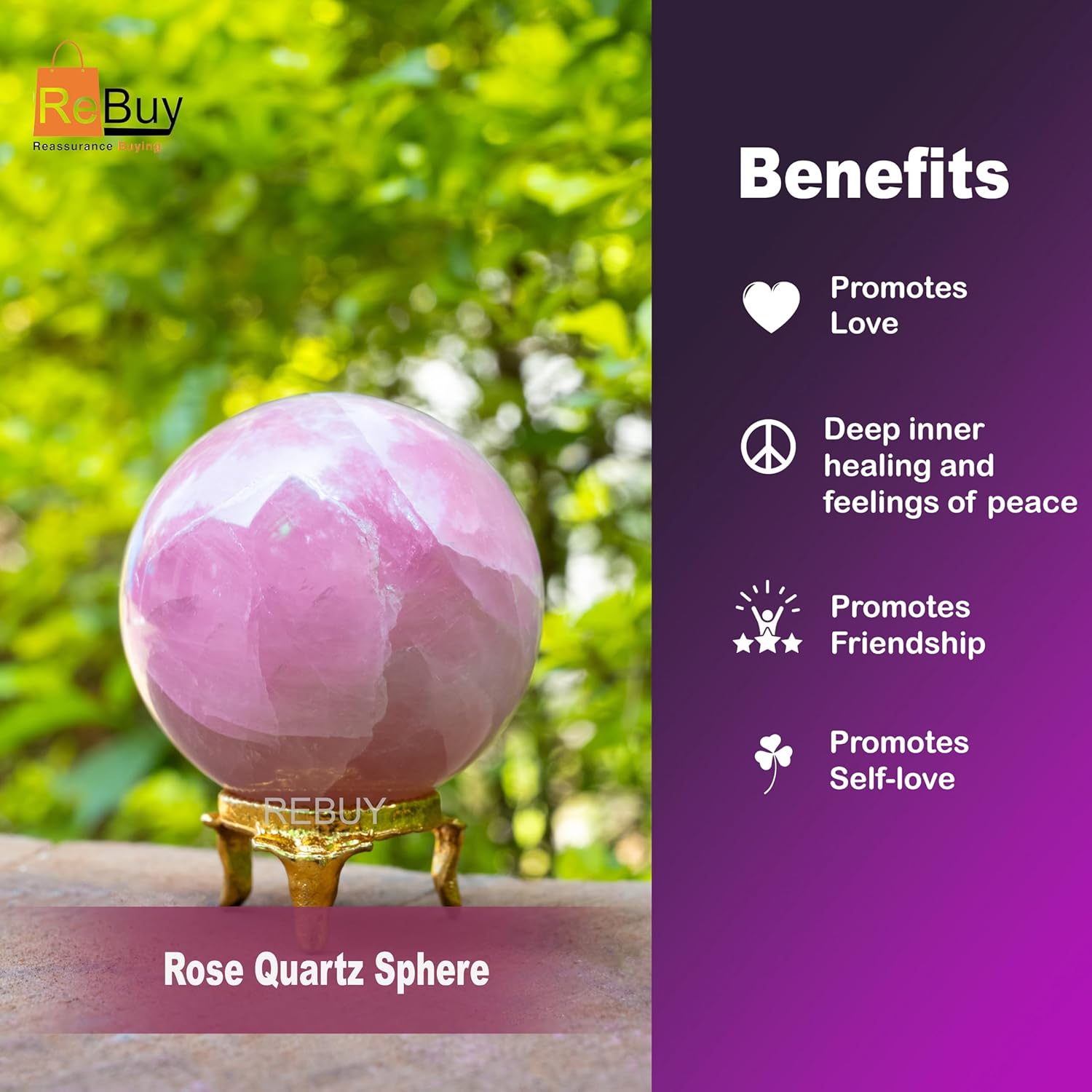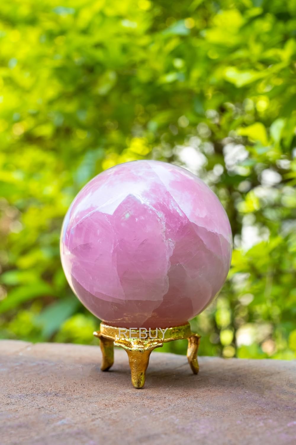 Rose Quartz Stone Sphere Ball with Stand 50mm Gemstone for Home Décor 200g Tabletop Showpiece BY REBUY