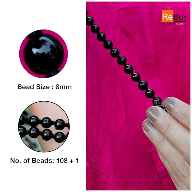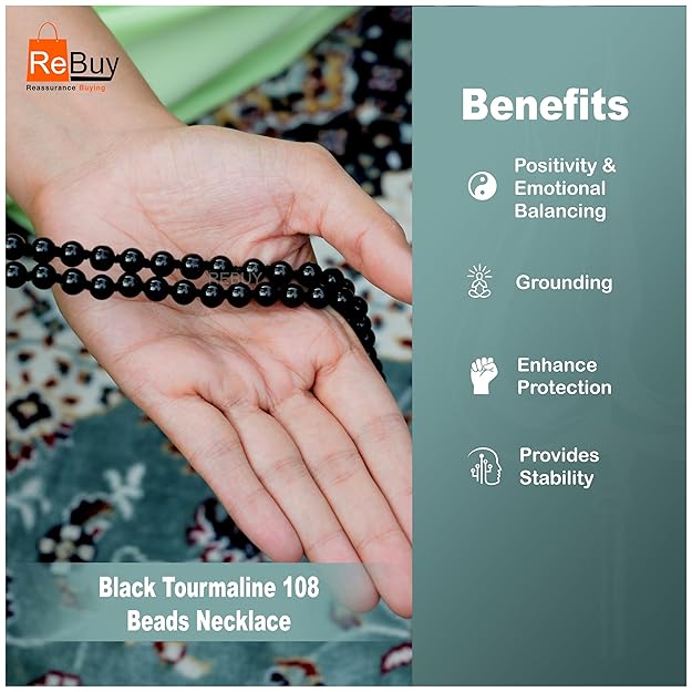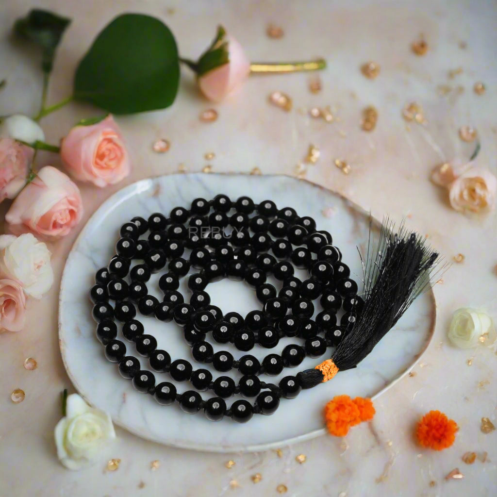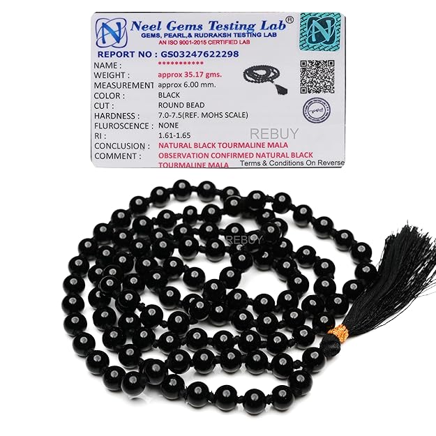 Lab Certified Black Tourmaline Stone Jap Mala & 108+1 Beads 6mm for Men & Women by REBUY