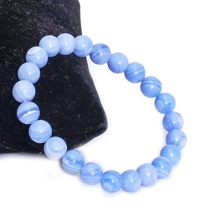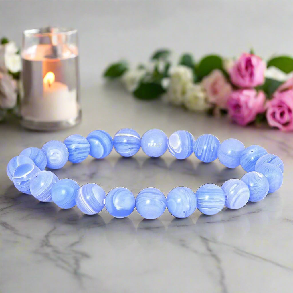 Blue Lace Agate Stone Bracelet for Men & Women 8mm Natural Healing Gemstone BY REBUY