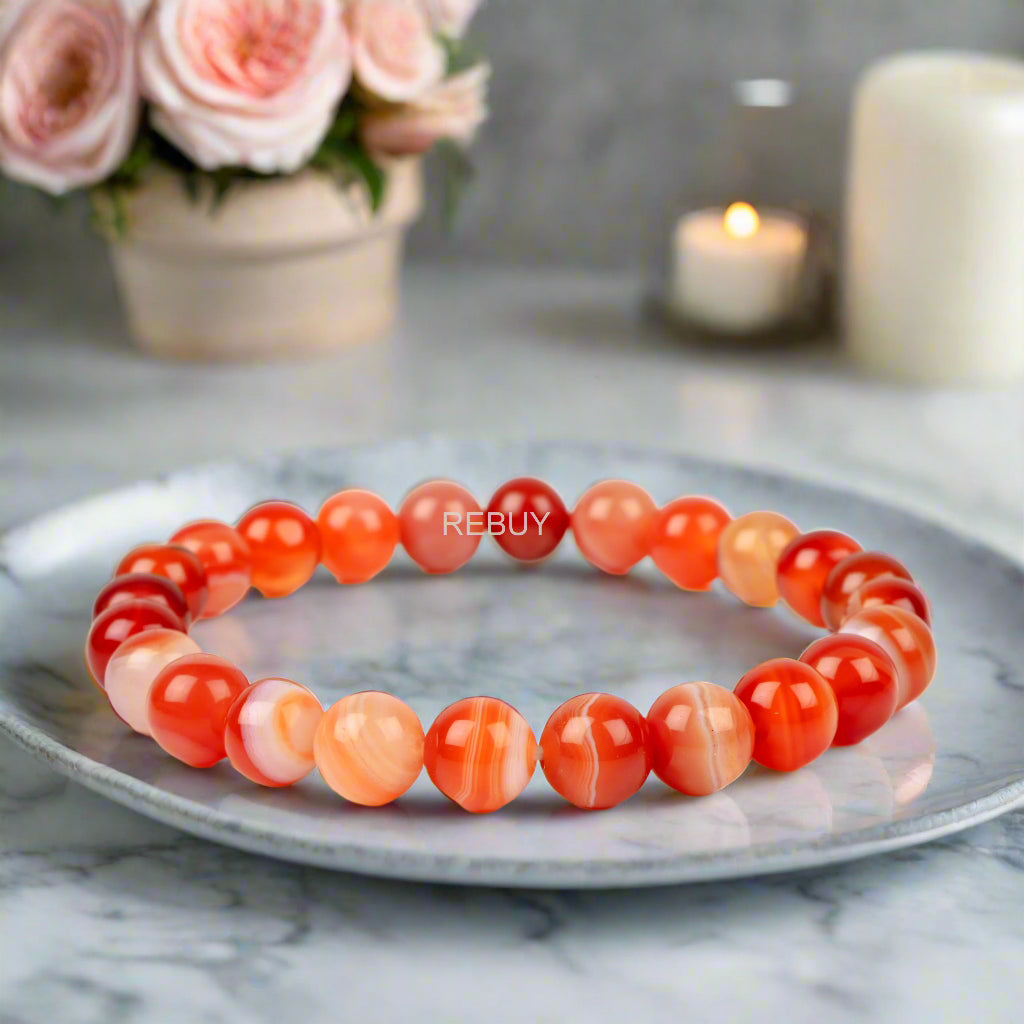 Orange Carnelian stone bracelet for Men and Women Bead size - 8mm Natural Healing Gemstone BY REBUY