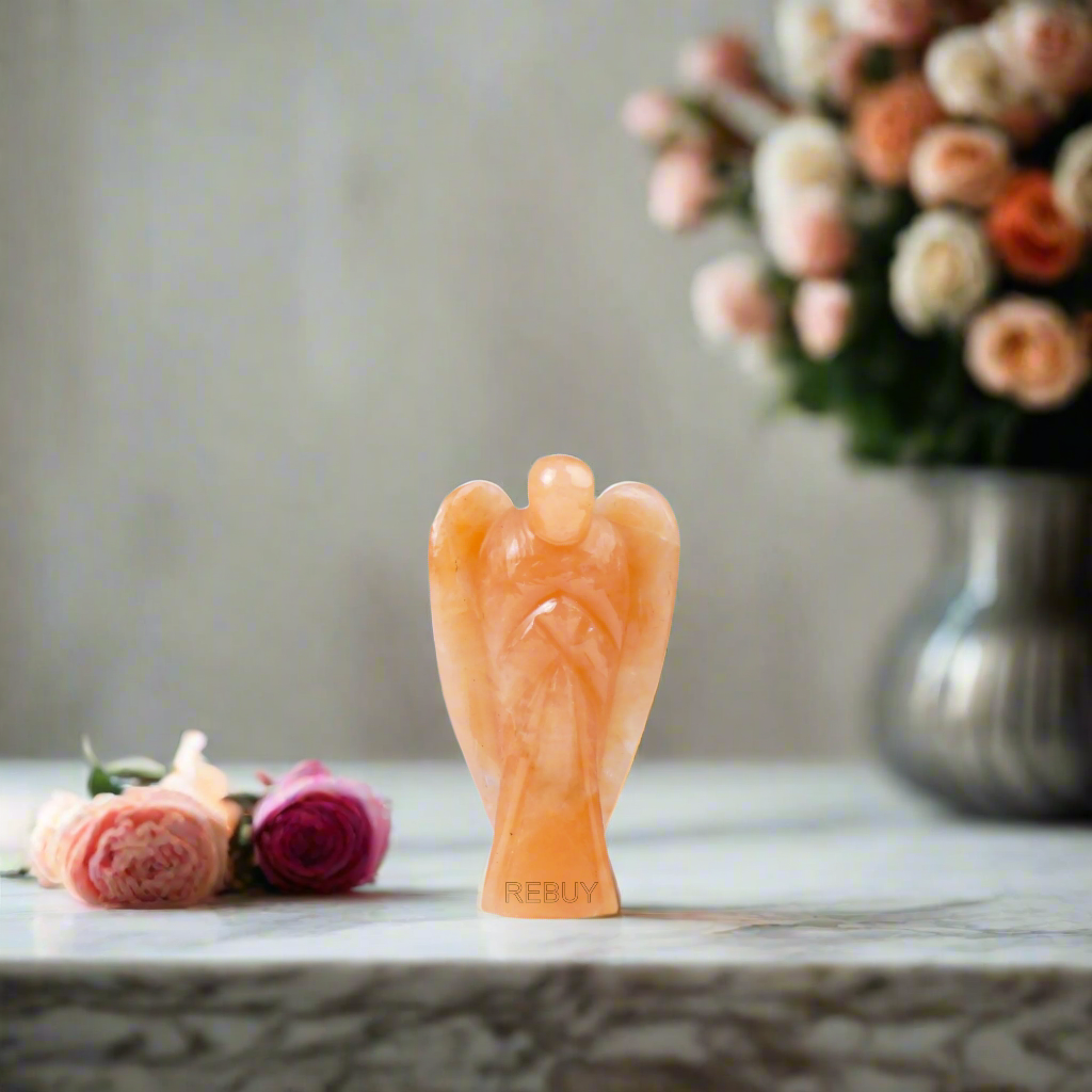 Red Aventurine Angel Crystal Angel Natural Healing Stone Angel Hand Carved Stone Angel Gift, Size 2 Inch