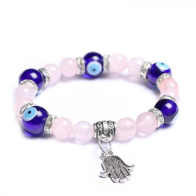 Rose Quartz With Evil Eye Stone Bracelet for Women & Girls 8mm Natural Healing Gemstone BY REBUY