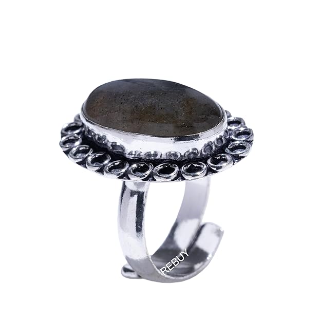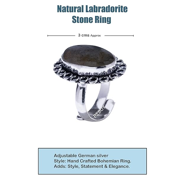 Labradorite German silver Adjustable Ring Natural Healing Crystal Gemstone for Both Men and Women BY REBUY