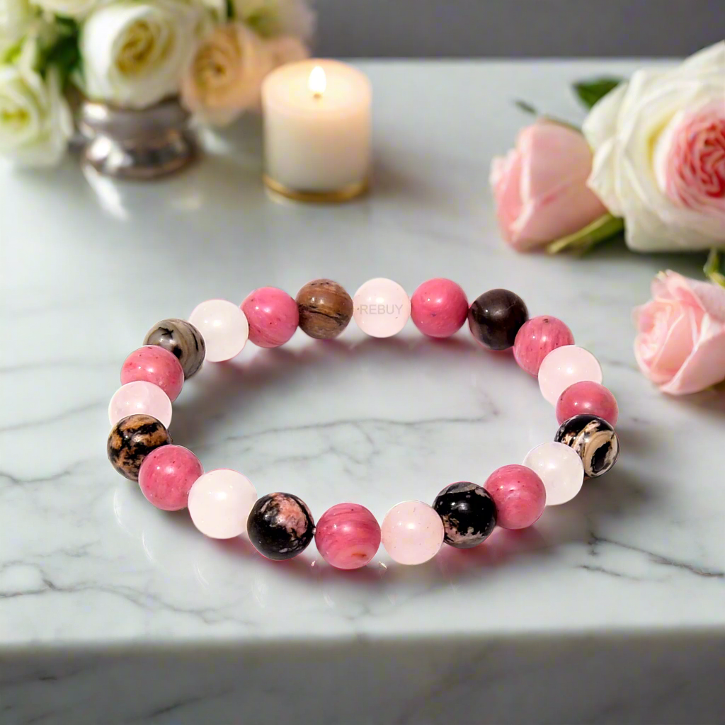 Rose Quartz Rhodonite Rhodocrosite Stone Bracelet 8mm Natural Healing Lab Certified Gemstone for Men & Women BY REBUY