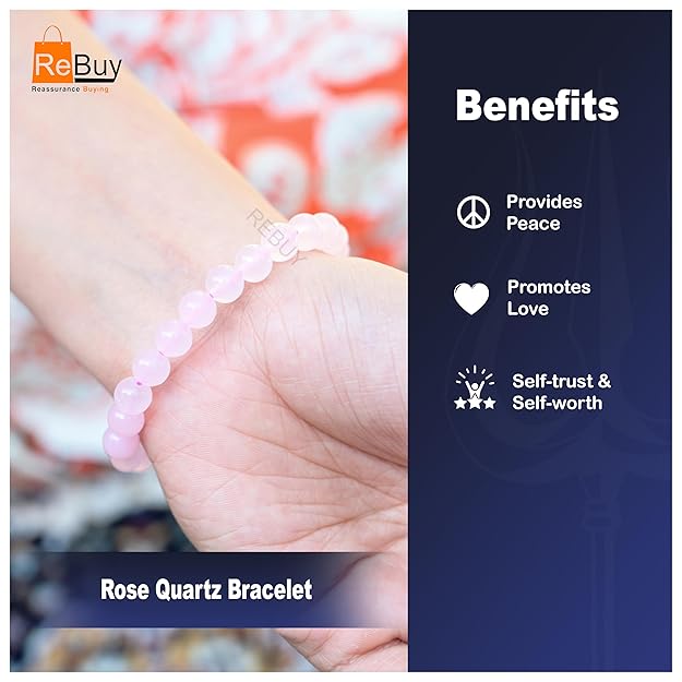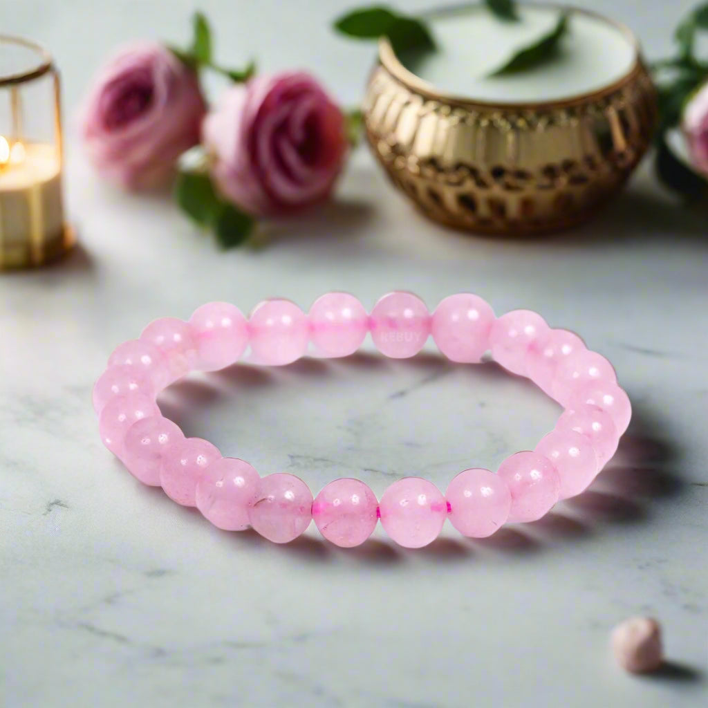 Rose Quartz Stone Brcaelet Lab Certificate 8mm Bracelet for Men & Women Natural Healing Gemstone BY REBUY