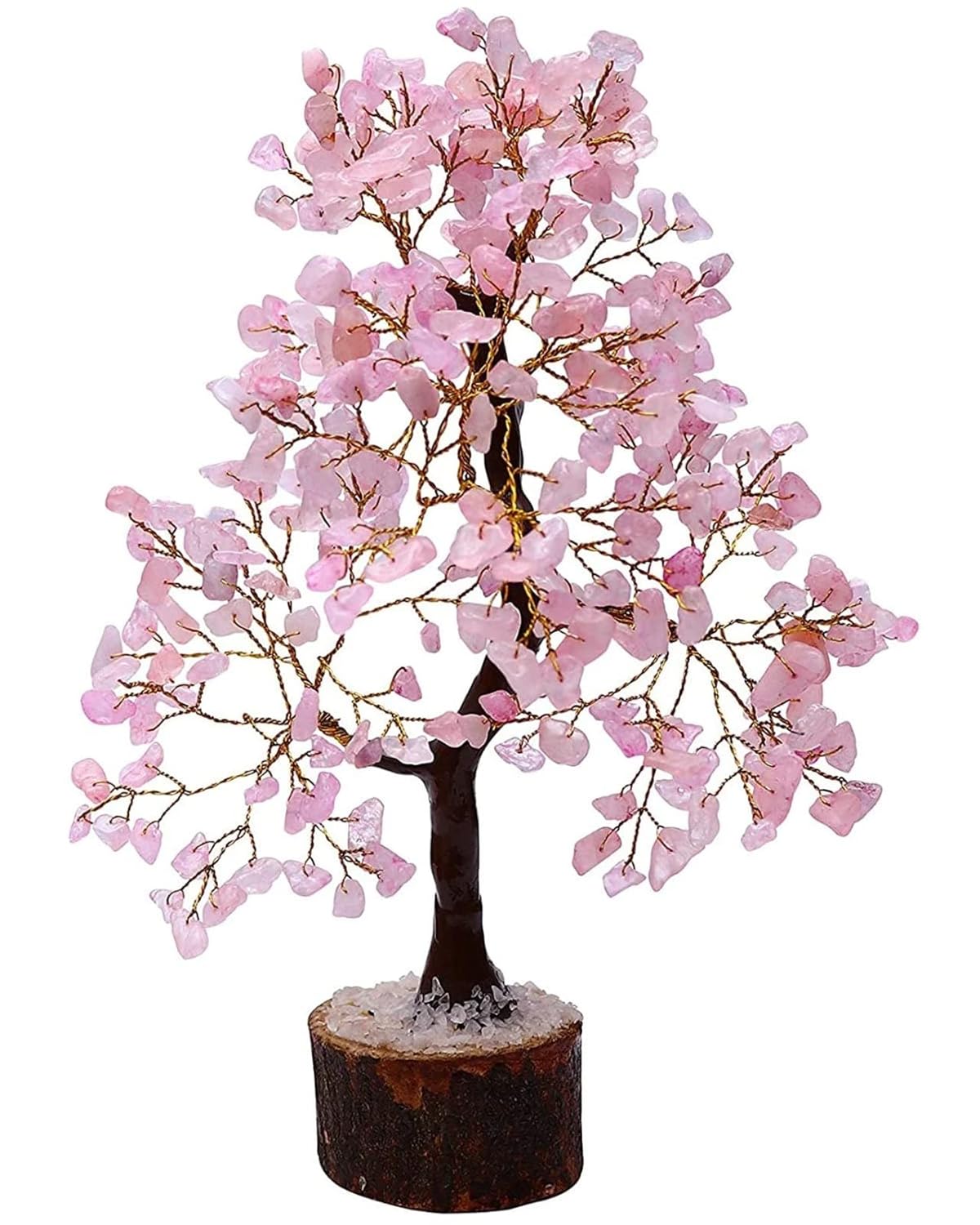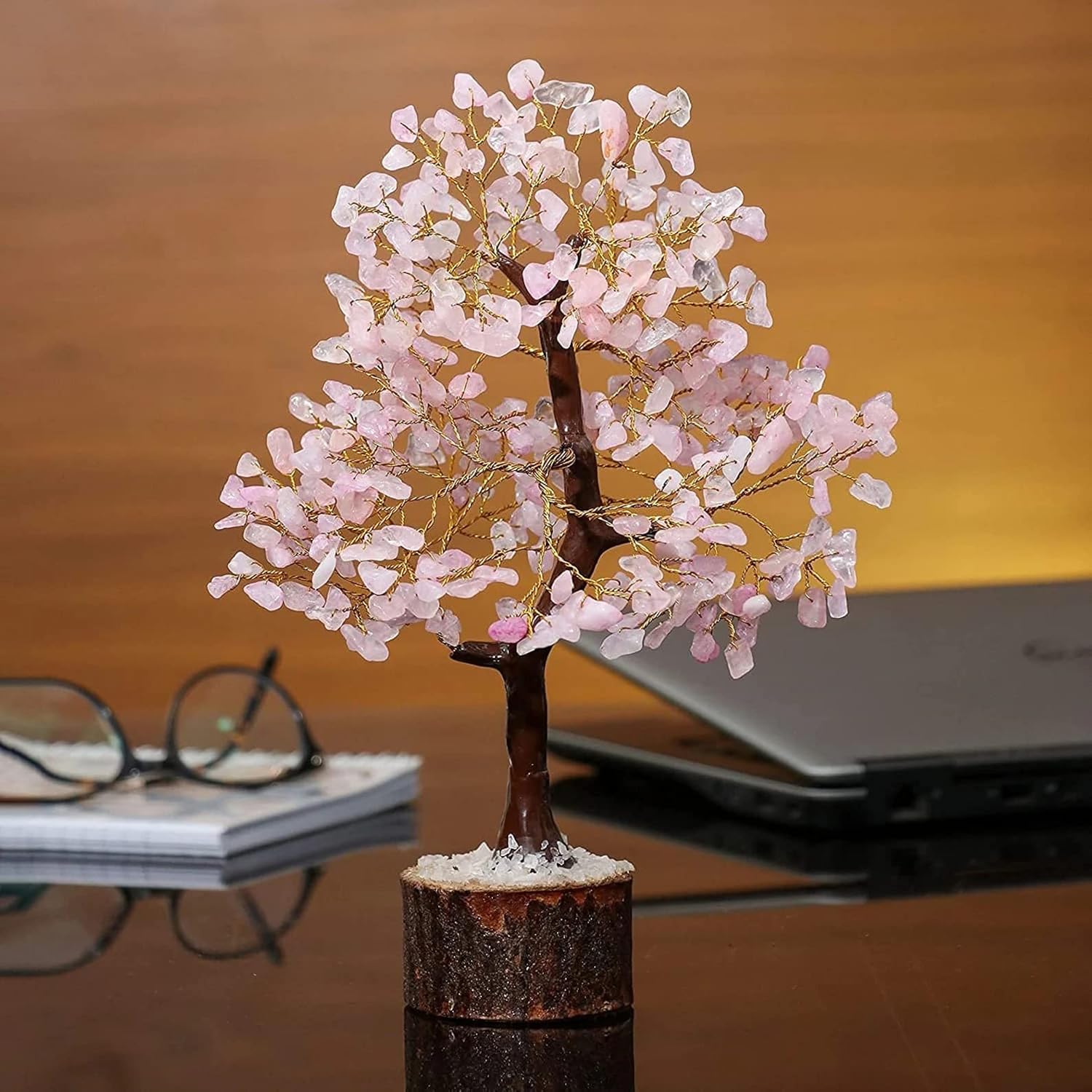 Rose Quartz Stone Tree 350 Beads Natural Gemstone for Reiki Vastu, Feng Suai & Home office Decor 9inch BY REBUY