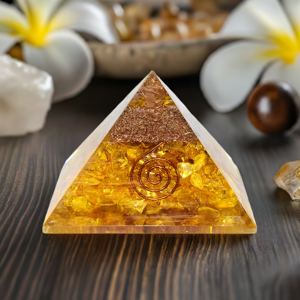 Yellow Citrine Orgone Pyramid | Orgonite Pyramid for Reiki Healing Vastu Fengshui Meditation Yoga Home & Office Decor Gift | 60-70 mm