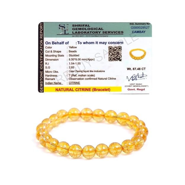 Lab Certified Citrine Natural Stone Bracelet Bead Size 8mm for Men & Women BY REBUY