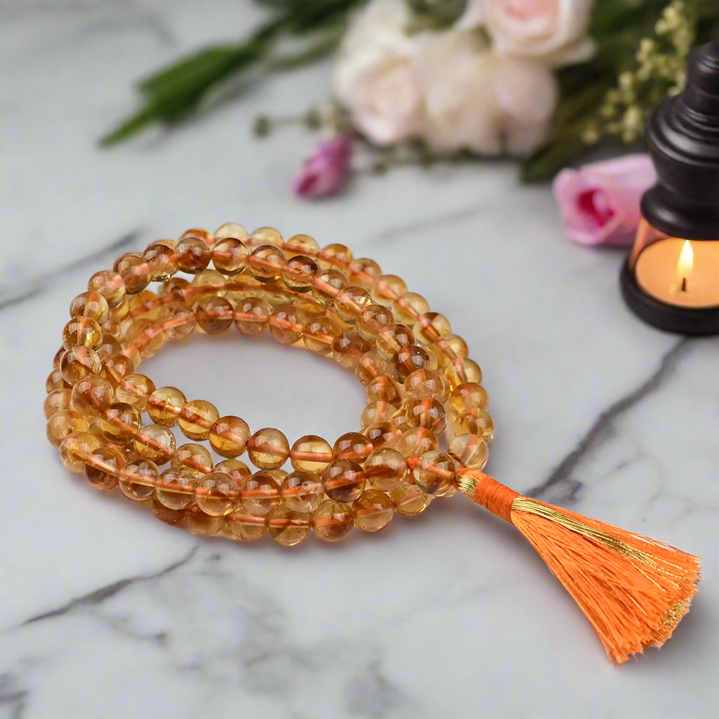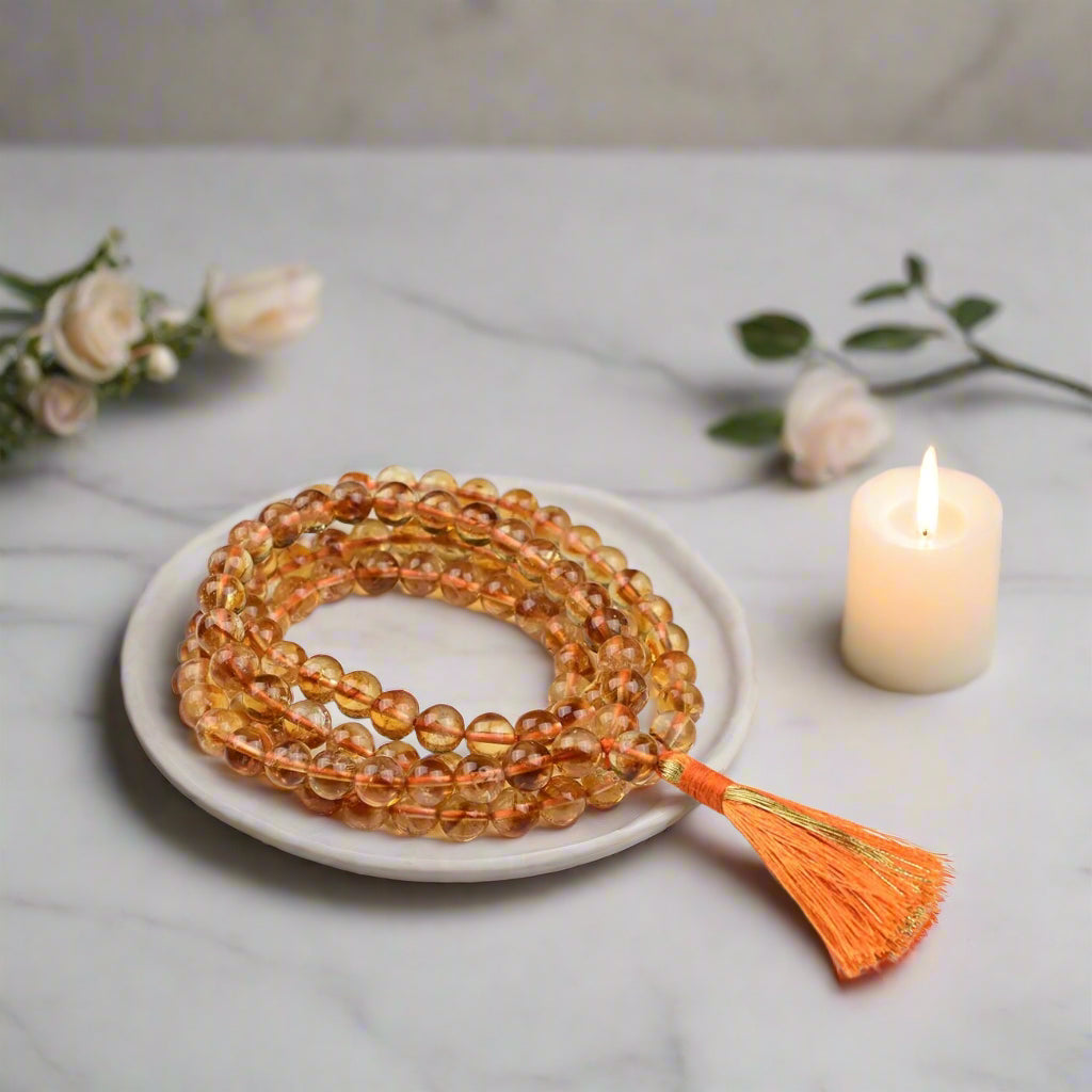 Citrine Stone Mala 8 mm 108 Beads Jaap Mala for Men and Women BY REBUY