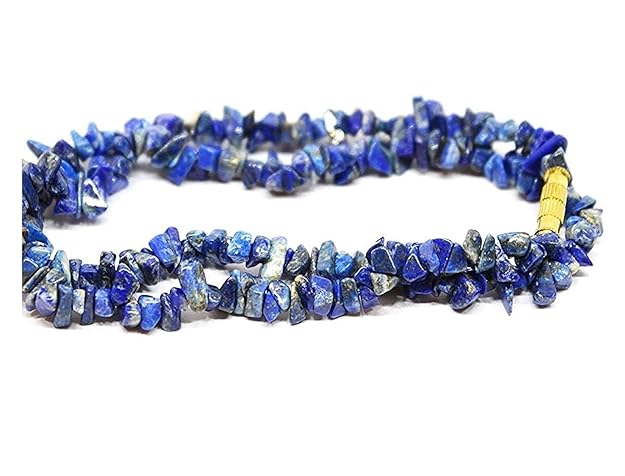 - Made with natural Lapis Lazuli chip stones in a 20-inch necklace design