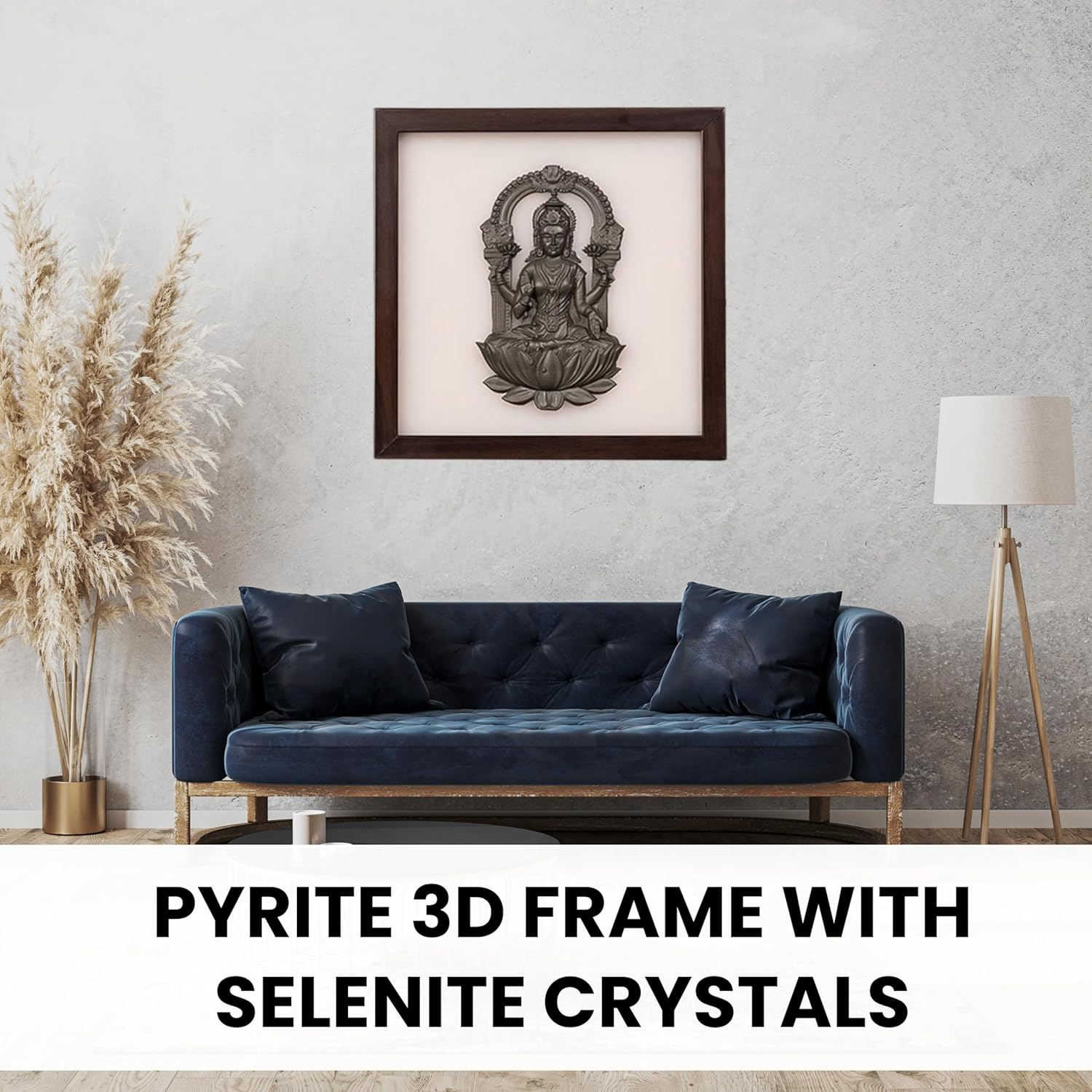 Pyrite Stone Ma Laxmi 3D Selenite Frame | Natural Healing Crystal Gemstone for Home & Office Vastu, Pooja Rooms, Work Desks | Attract Money, Wealth | 22x22 cm