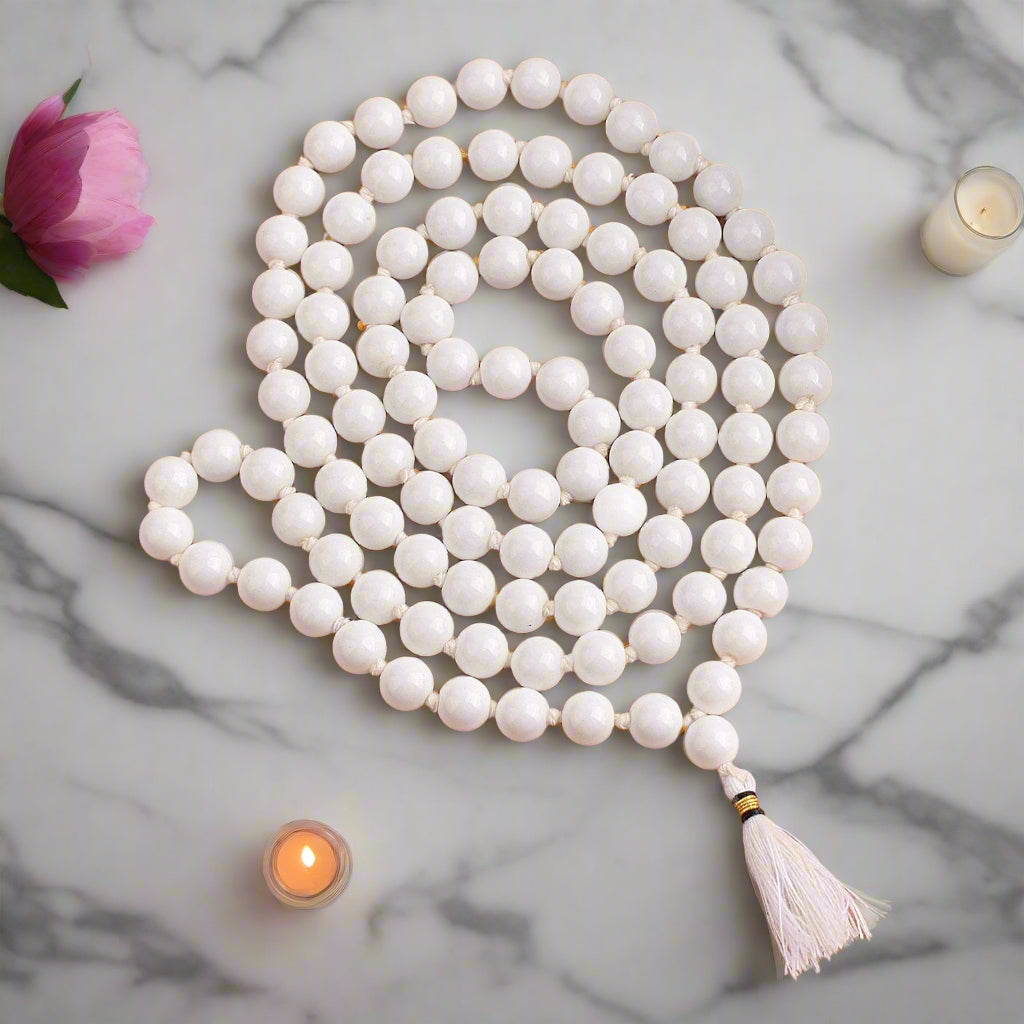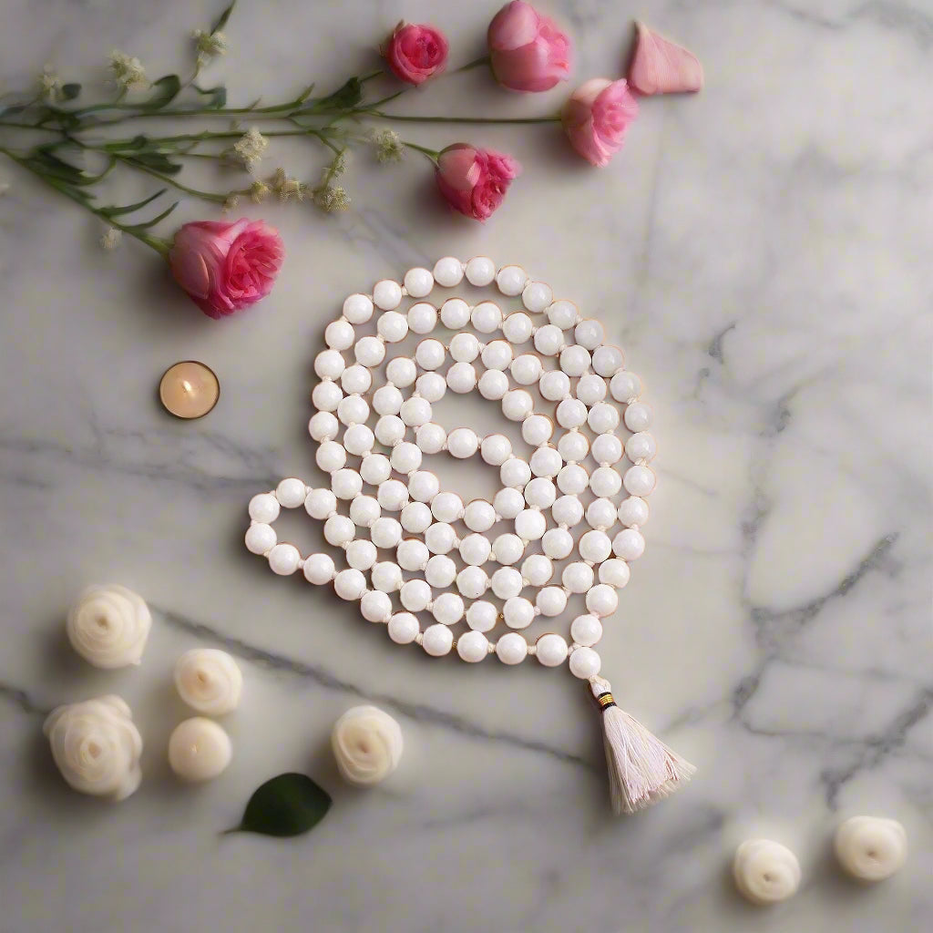White Agate Stone Mala Crystal Necklace 108 Beads, 6mm Jaap Mala for Men & Women BY REBUY