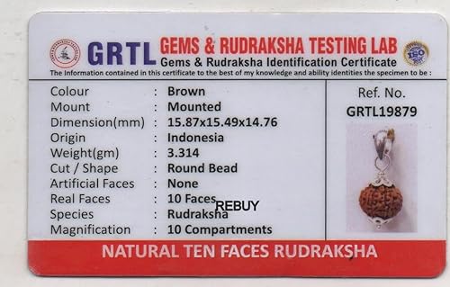 10 Mukhi Rudraksha Pendant Indonesian/Java Rudraksha Lab Certified Original Rudraksha Pendant for Men & Women, Origin Indonesian, Color Brown
