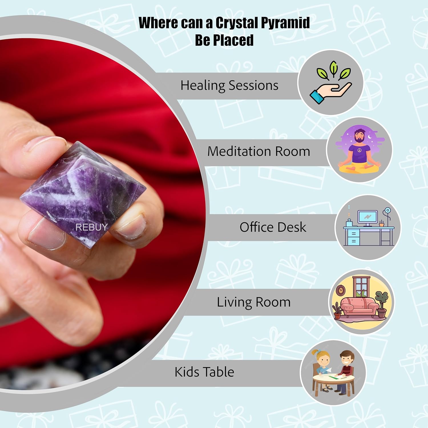 - Natural Amethyst Pyramid – Enhances spiritual energy & clarity