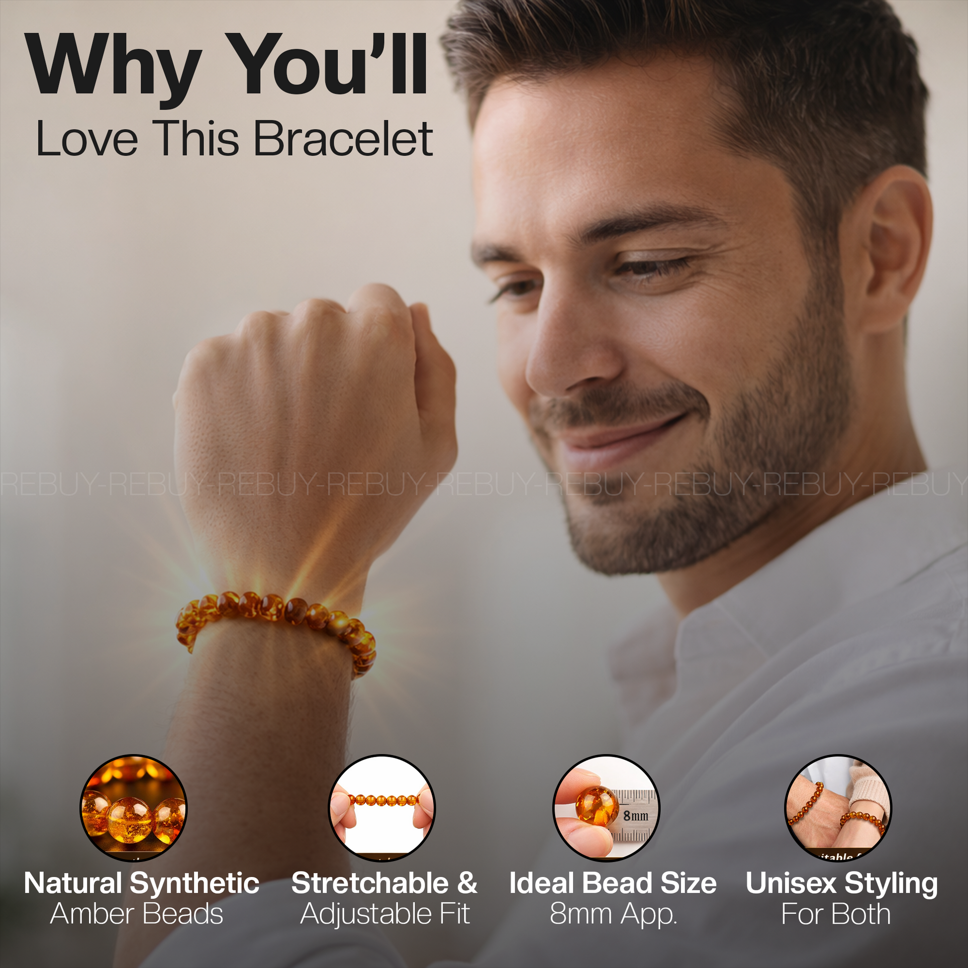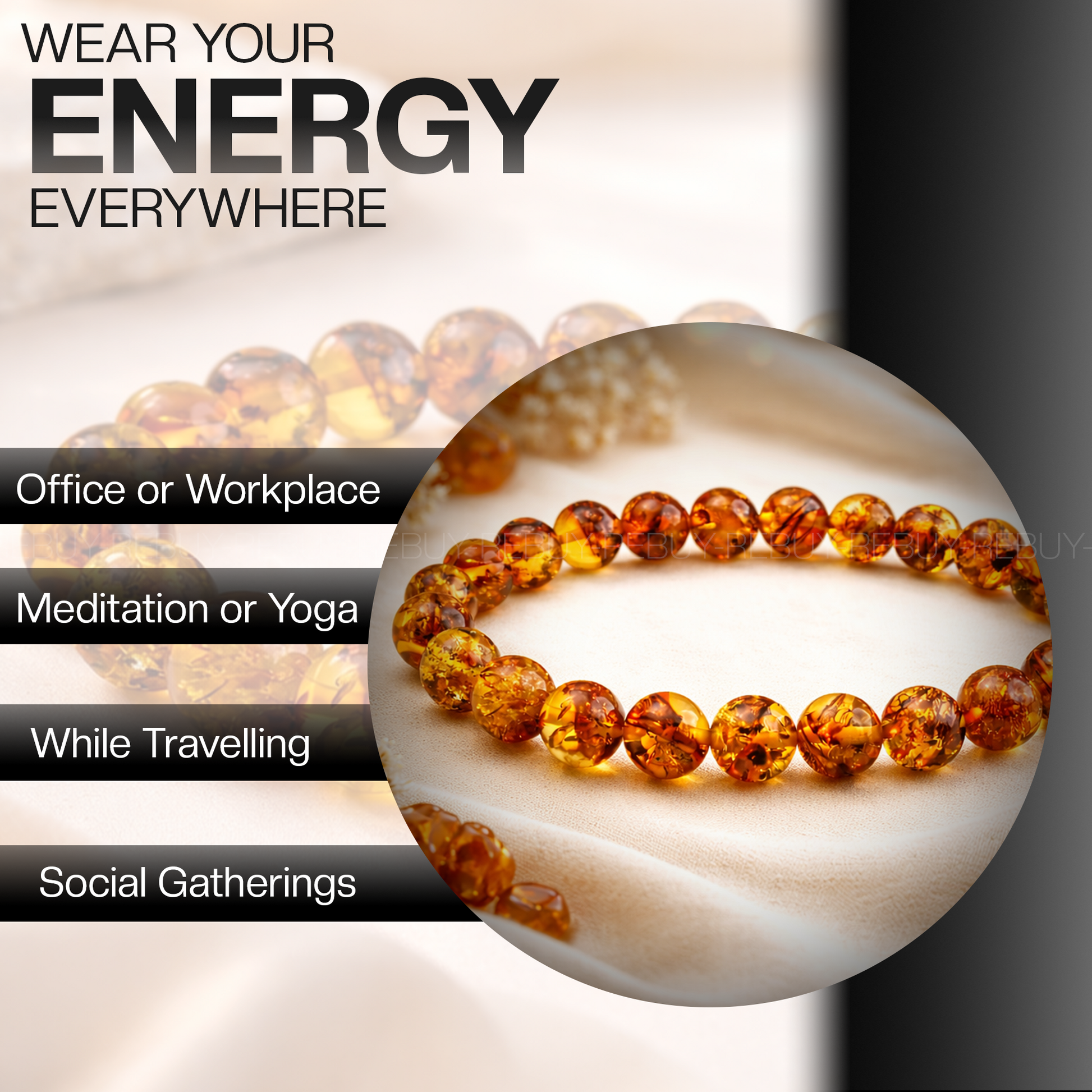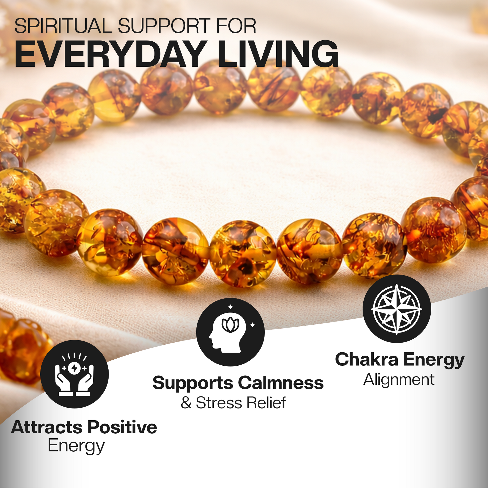 Amber Bracelet for Women Men with Healing Crystal and Reiki Stone.