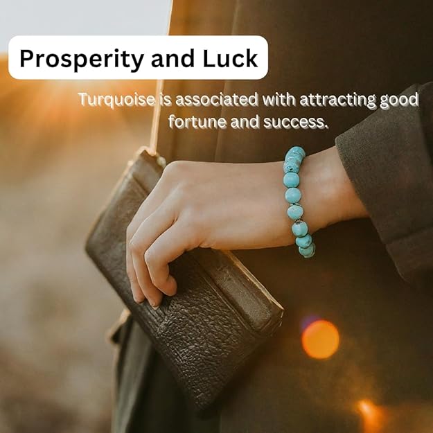 Firoza Turquoise Stone Bracelet for Men & Women 8mm Natural Healing Crystal Gemstone BY REBUY