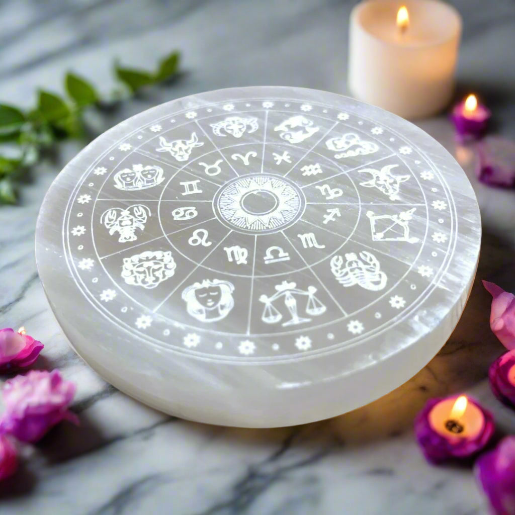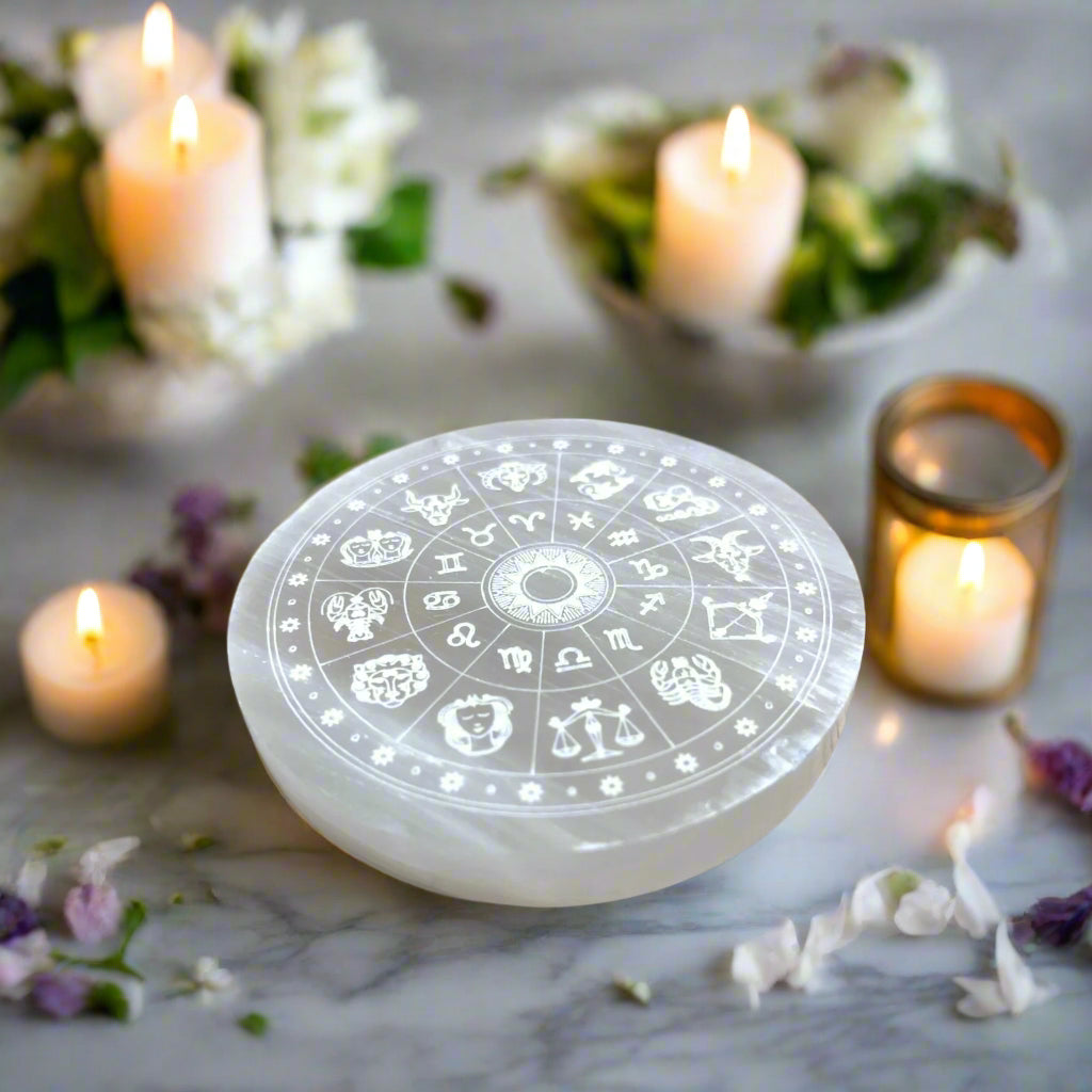 Enhance your spiritual practice with the REBUY Selenite Crystal Charging Plate – 3-Inch Round Disc with Chakra Symbols. Crafted from natural white satin spar selenite, this plate is a powerful energy tool for cleansing, recharging crystals, aligning chakras, and amplifying your spiritual space.